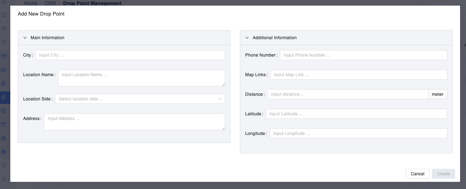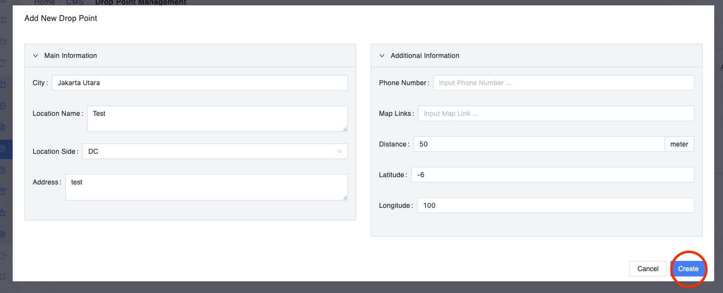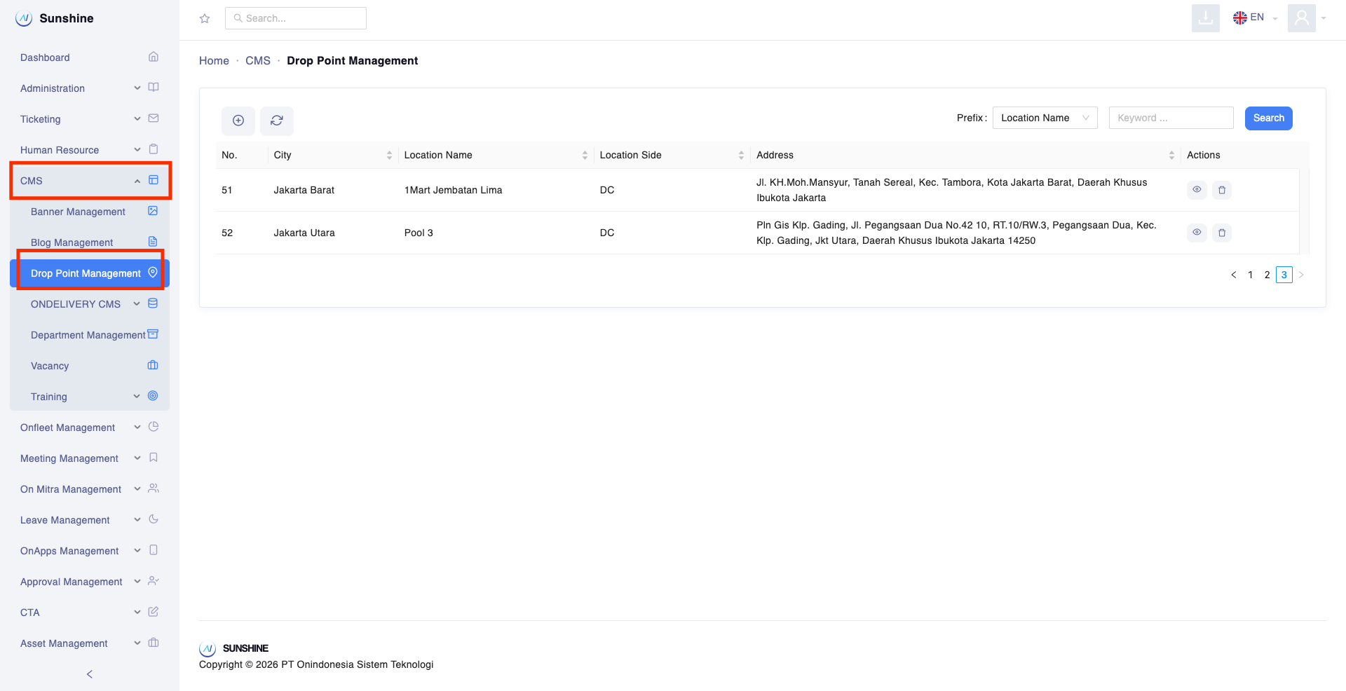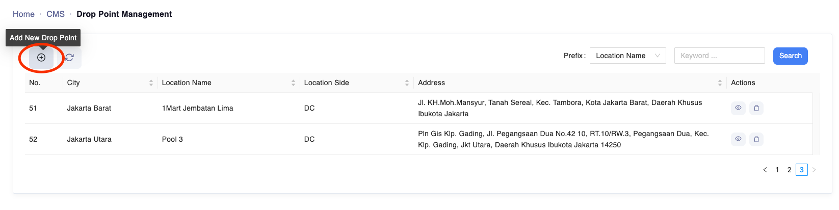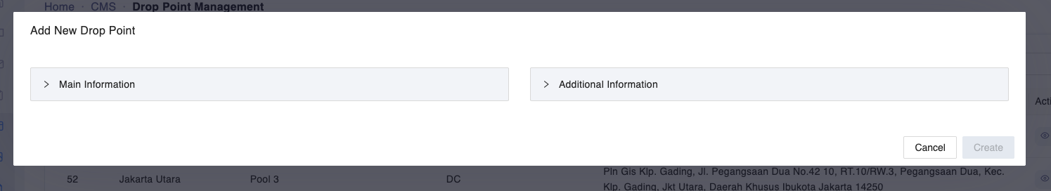 Klik menu CMS > Drop Point Management